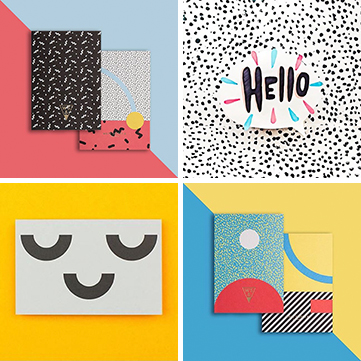 イタリア現代デザインの礎となった1980年台のメンフィス派と呼ばれるポストモダンのアーティスト、エットレ・ソットサス、アレッサンドロ・メンゴーニなどの作品をモチーフにした、色鮮やかでメッセージに満ちた8種類のデザインを、4冊のノートの両面の“表紙”に配して、2つの異なったイメージを持つノートとしてどちらからも使える工夫のほか、小口のマジックパターン、純金箔のロゴなど、一冊ずつを完結した一つの作品とするためのこだわりを隅々まで凝らしています。
