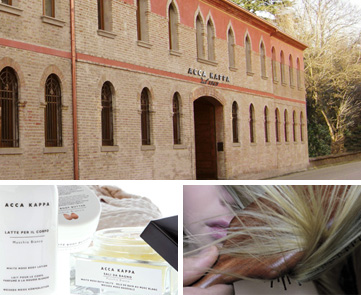 世界中のヘアスタイリストたちの高い要求に、 応え続けてきたのがアッカカッパの品質です。 ファッション界をリードするプロが認めたヘアブラシ。 現在は、ボディブラシ、メイクアップブラシなども加わり、 豊富なラインナップ。 これらの製品は、天然素材を使用し、昔ながらの技で職人がひとつひとつ丁寧に仕上げています。 天然の香り 体につけるものだから、 アッカカッパのボディケア製品は、天然の成分にこだわっています。 フレグランスには、イタリア産の花や植物から抽出した香りを調合。 まるでイタリアの庭園にいるような、自然な香りそのものです。 安心して使えることもまた、美の一部である、 アッカカッパはそう考えます。 世界が選んだブランド 長年に渡り築き上げてきた、アッカカッパの美の世界は 広く世界で指示され、高い評価をうけています。 近年では、世界の有名ホテルやエアラインのファーストクラスのアメニティにも採用されるなど、 高品質な物づくりは多くのプロフェッショナルに認められています。