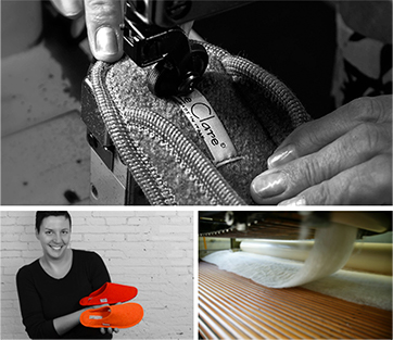 ドロミテ山脈を仰ぐ緑の美しい丘の町モンテベッルーナで生まれ育ち、幼いころからスポーツシューズの職人、そしてデザイナーとしてキャリアを積んできたクララ・ペリン女史が100%イタリア製の素材と機能的なデザイン、ハンドメイドで作り上げるパントフォレ(ルームシューズ)のブランドがレ・クラレです。